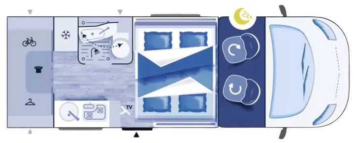 A Challenger X250 egy egyedülálló guruló otthon a Smart Dressing HUom rendszernek köszönhetően, amely rendkívül személyre szabhatóvá teszi a tárolóhelyet.