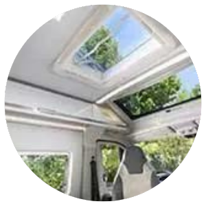 A furgon lakóautók kiváló minőségű, keretes ablakokkal vannak felszerelve, amelyek természetes fényt és kilátást biztosítanak.