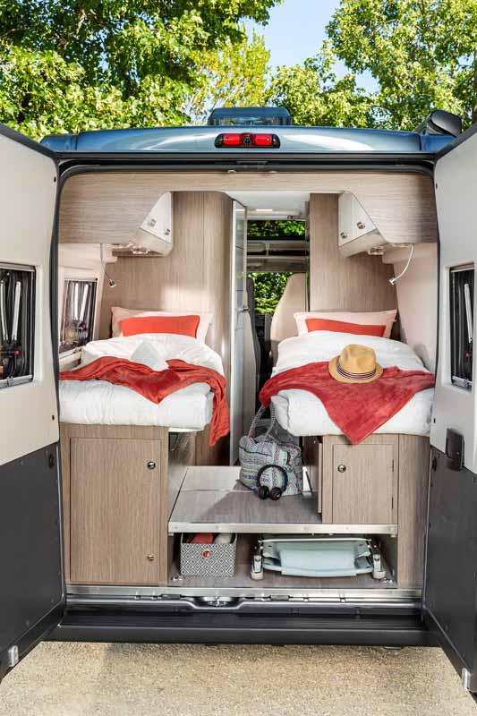 Élvezze a tökéletes társat 2 fő részére a Challenger V217-gyel! A lakóautó két nagyméretű egyszemélyes ágyat kínál, amelyeken otthon érezheti magát.